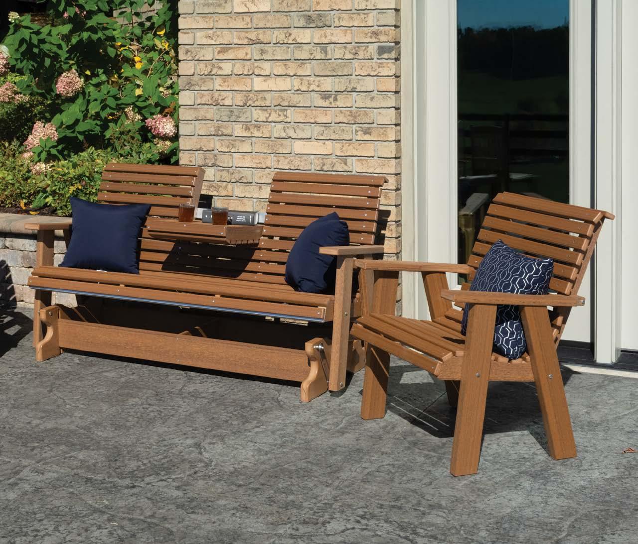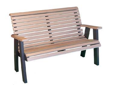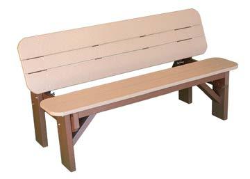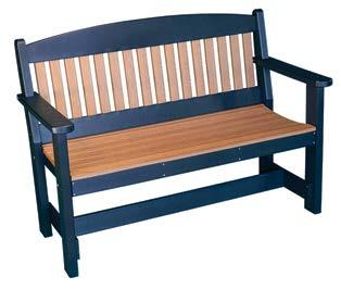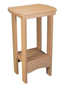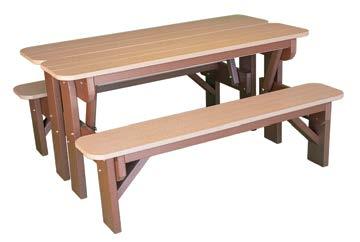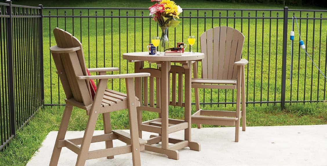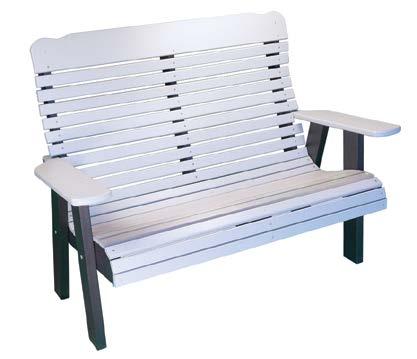 Poly furniture is made from High Density Polyethylene (HDPE), a recycled plastic that will never need to be painted or stained. It will not rot or splinter, and it contains an added UV protective agent to resist fading. Poly furniture is not affected by most corrosive substances and will not promote bacterial growth.