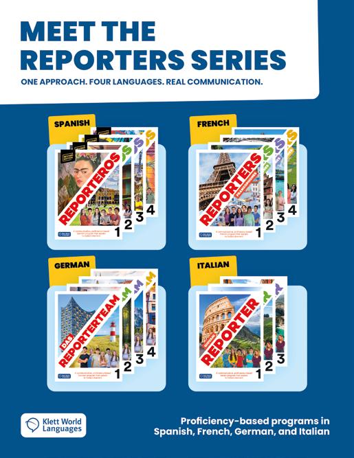 The next volume in our German program, extending the projectbased REPORTERS series approach with communicative tasks, cultural exploration, and accessible practice— available in print and on The KWL Hub.