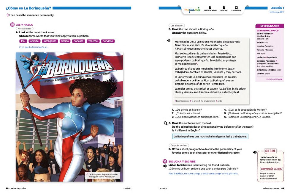 A refreshed version of our flagship program with updated cultural content, a new Palabras en uso section, expanded teacher support, strengthened assessments, an improved Annotated Teacher’s Edition, and an enhanced digital experience on The KWL Hub.