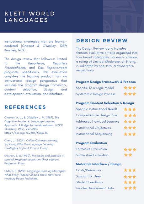 At Klett World Languages, we prioritize research-based and data-informed materials that support impactful teaching and lasting student achievement. Our programs are shaped by proven methodologies, classroom evidence, and ongoing analysis of how students and teachers use our resources.