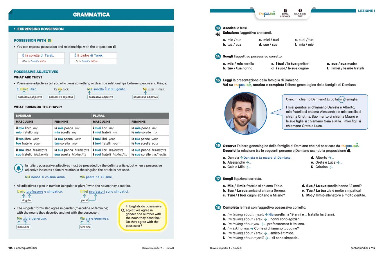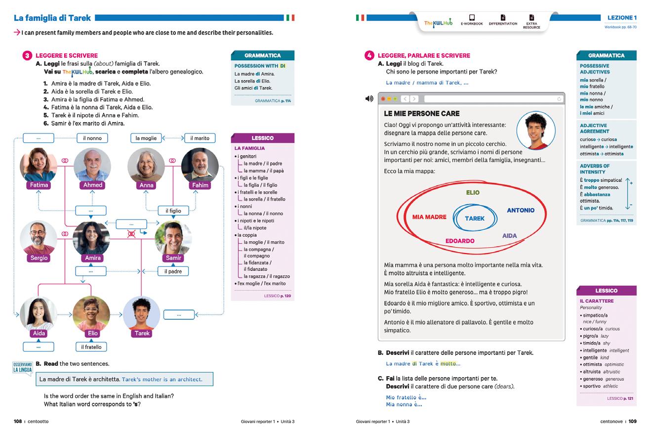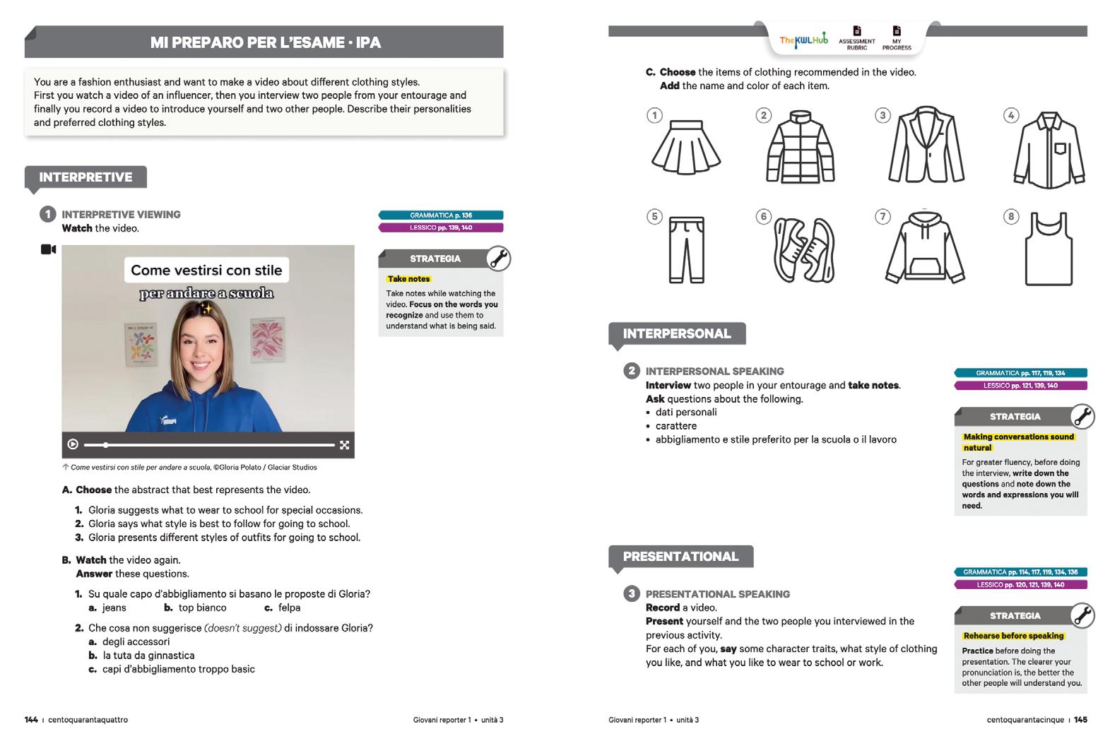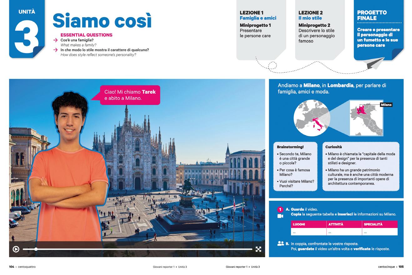 Every unit of GIOVANI REPORTER is built with a clear, intuitive structure that guides students from exploration to real-world communication—through videos, culture, vocabulary, grammar, and meaningful tasks that culminate in a complete IPA.