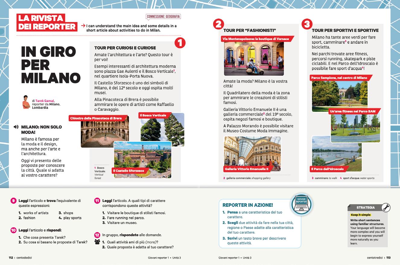 You’ll become a reporter by creating a short journalistic report (written or recorded) as your contribution to the La rivista dei reporter magazine. Materials and worksheets for activities: Differentiation, Extra Material, and the interactive Workbook.