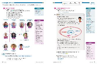 Three doublepage spreads per lesson, each representing a different theme.