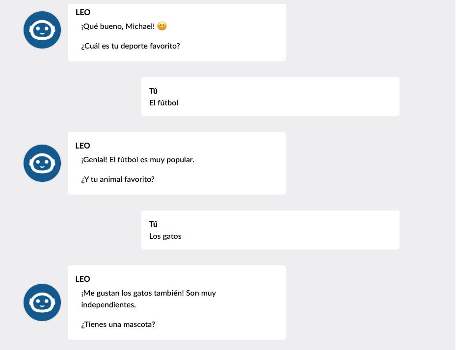 LEO offers level-specific conversation paths designed to help students practice at their current proficiency level.