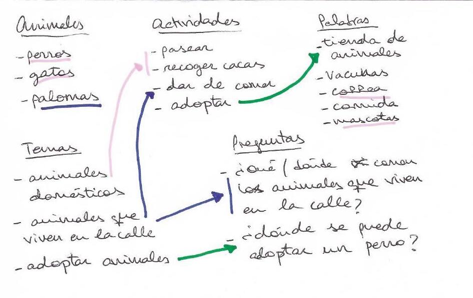 b. Usa flechas para relacionar distintos temas y piensa en el orden de las ideas que vas a usar en tu texto.