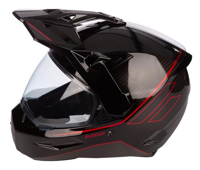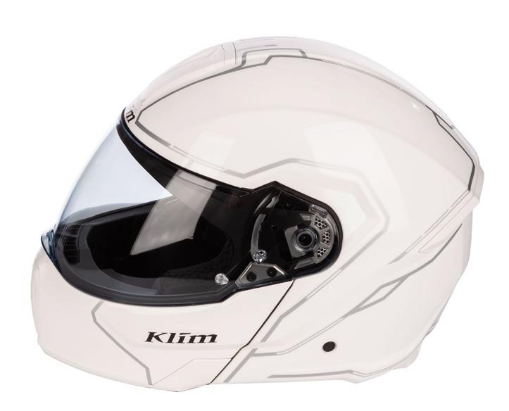 • KLIM PROPRIETARY HINGE PLATE MECHANISM MOTION PATH CLOSES FACE SHIELD FLUSH TO SHELL, RESULTING IN BEST-IN-CLASS AERODYNAMICS AND NOISE REDUCTION