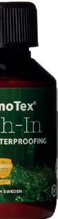 Många impregneringsmedel innehåller uorkarboner, vilket kan vara skadligt för miljön. I dag nns det era miljövänliga alternativ som är lika e ektiva, som exempelvis Grangers, Nikwax och OrganoTex. Dessa produkter är snällare mot naturen och fungerar bra för de esta skalplagg. •