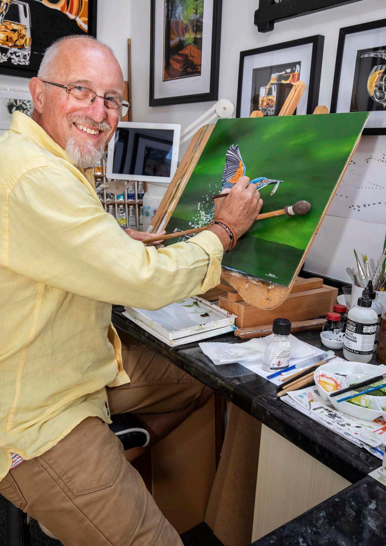 Marty Gri n: I love elements of both watercolours and oils, as they can be used in wonderfully di erent ways to create striking pieces. I find watercolours clean to work with and appreciate the variety of colours and layers they o er, especially when capturing seascapes and sunsets. However, nothing can compare with the incredible photo-realistic style of oils, which can be used to achieve another level of detail.