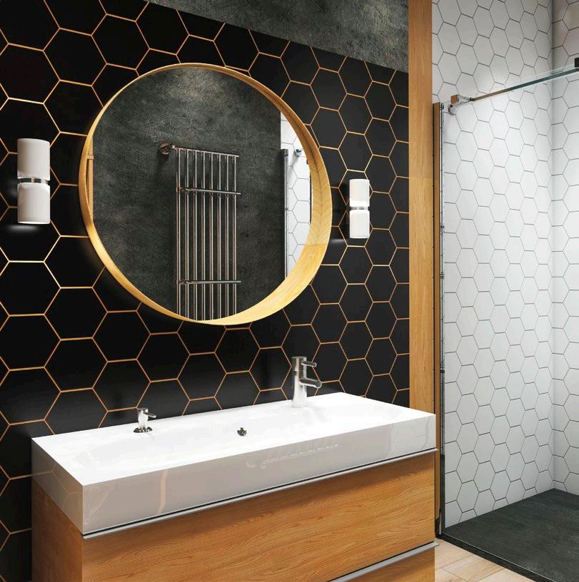 “I think we are going to pay more attention to color and light in our bathroom spaces,” says Sayers. “Bold colors and even patterns are showing up through paint choice, mosaic tile patterns, and even the oftforgotten window treatment. I’m especially excited to see more backlit bathroom mirrors make an appearance. It’s a great way to add moody, flattering light.”