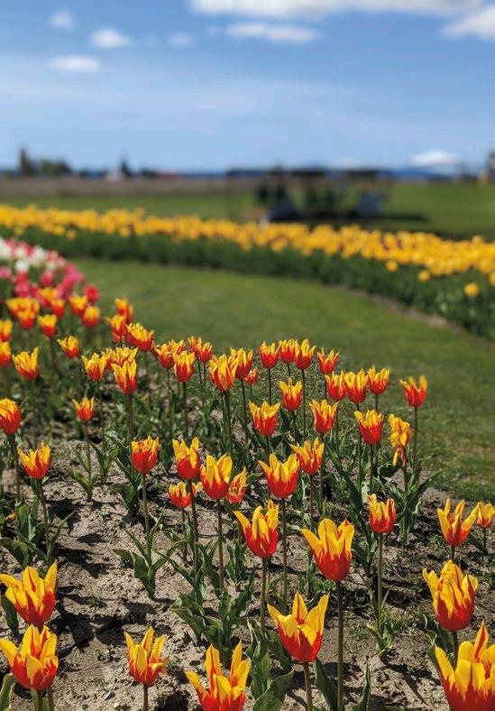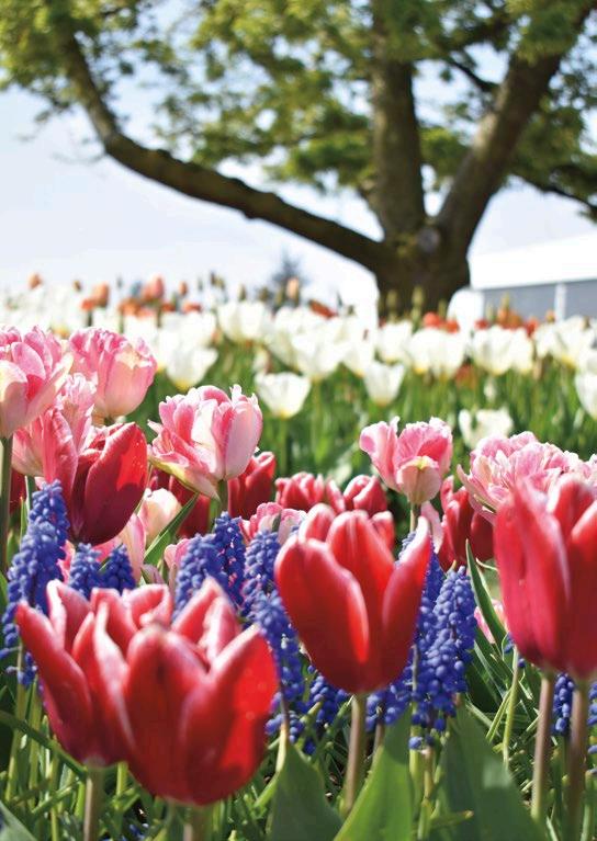 Meanwhile, the newest addition to the tulip route is Garden Rosalyn, which features a series of tulip ‘rooms’—small, specially-designed sections of awardwinning planting layouts that give each area of the farm a different feel. They also host a flock of lovely, perhaps a bit spoiled waterfowl in the small lake at the center of the field. Photo-ops abound, between the tulips themselves, the pretty blue windmill, and the vintage mirrors and step stools thoughtfully placed around the property to give visitors access to better views.