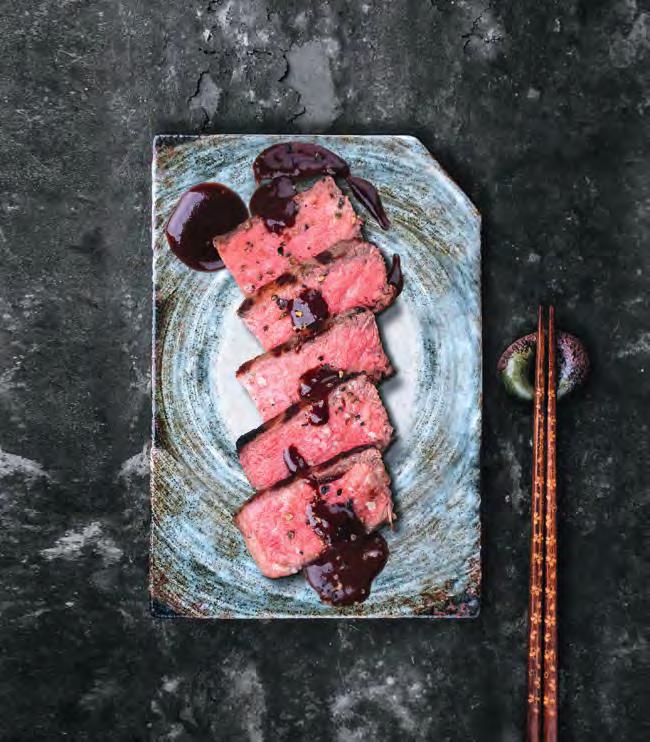 Das wertvollste Fleisch der Welt stammt aus Japan. Wagyu-Rinder zeichnen sich nicht nur durch den hohen Marmorierungsgrad ihres Fleisches aus. Sie sind, verglichen mit anderen Rinderarten, wie z.B. dem AngusRind, von besonders großer und kräftiger Statur. Das intramuskuläre Fett schmilzt bereits bei 25 °C und gibt dem Wagyu Beef damit eine cremige Konsistenz, die in dieser Form einzigartig ist. Das Fleisch schmeckt herrlich aromatisch und zergeht auf der Zunge – Umami pur!