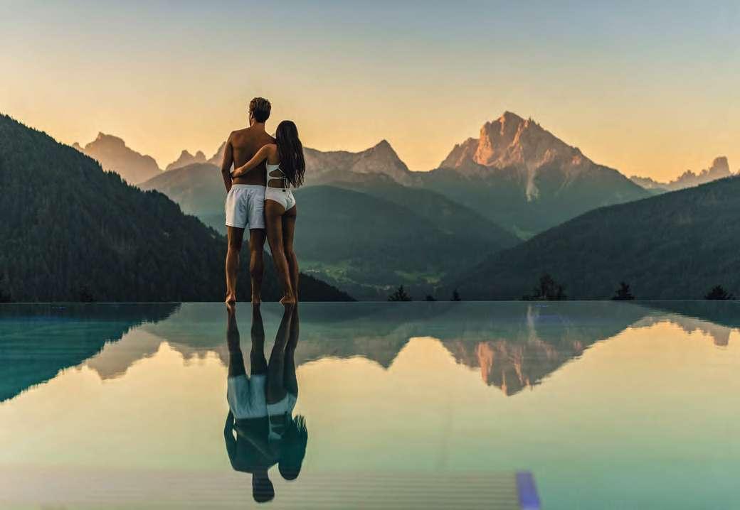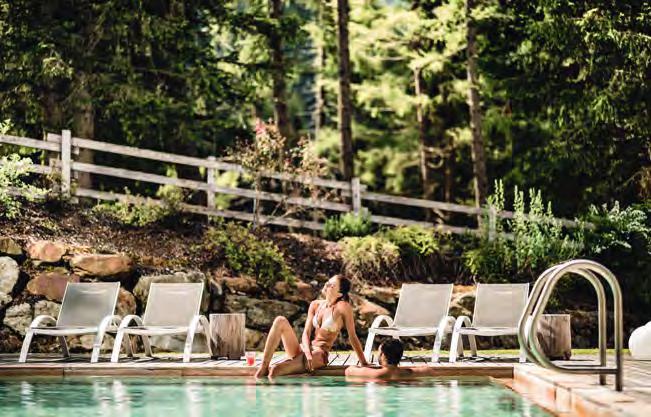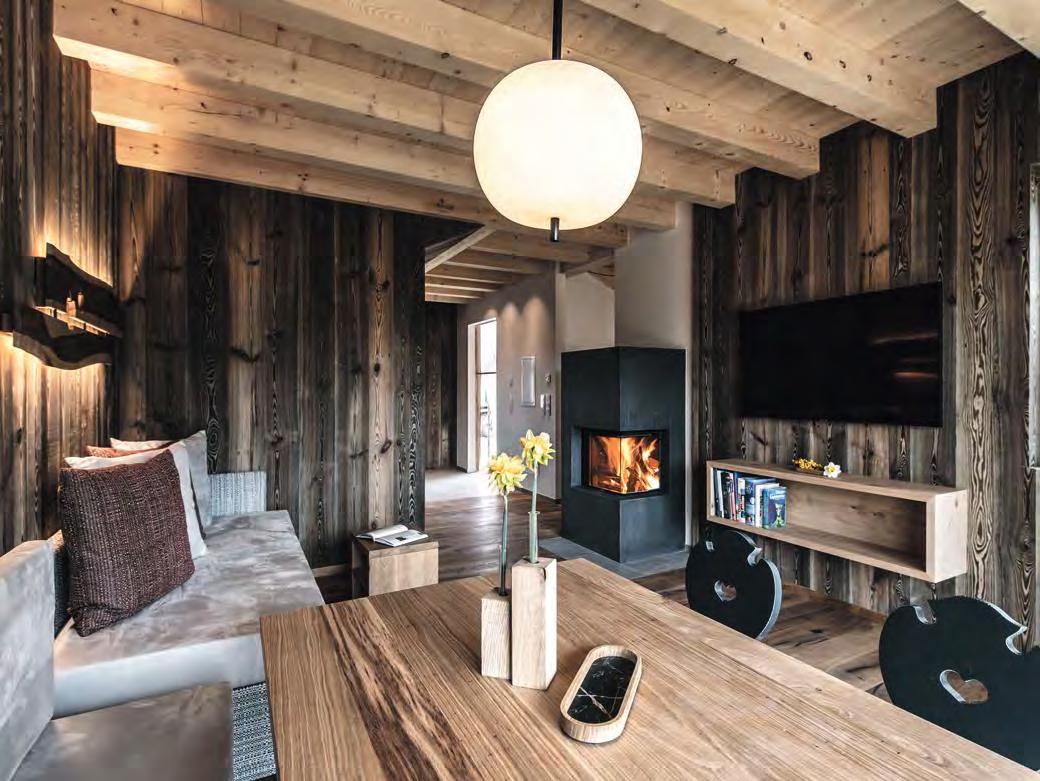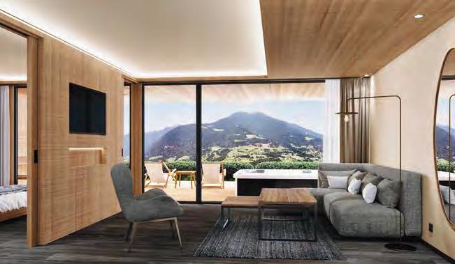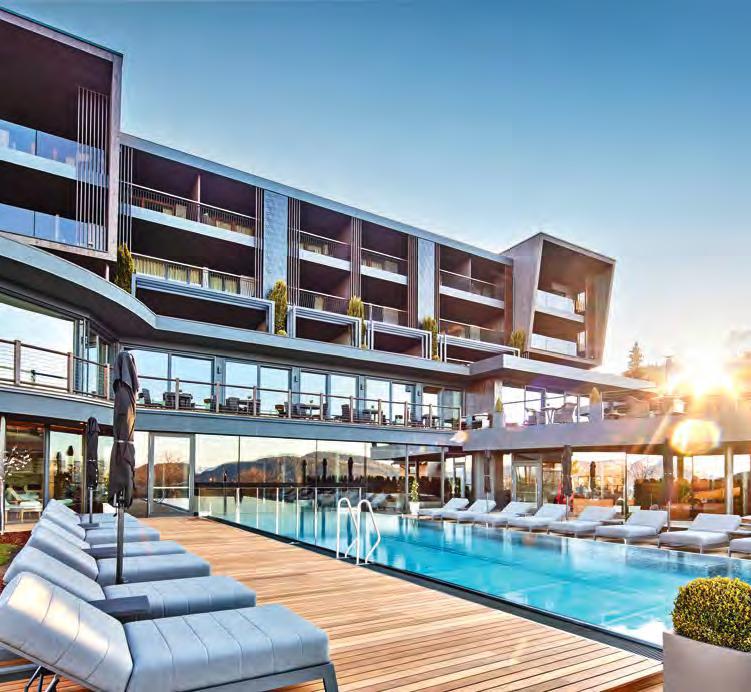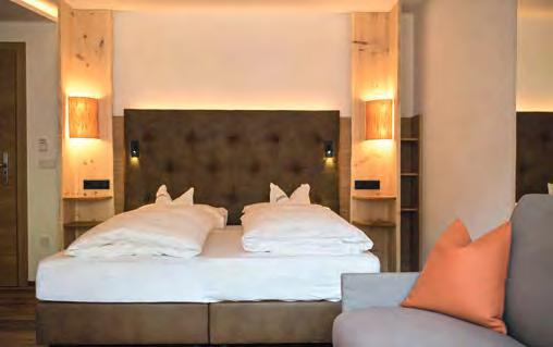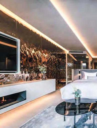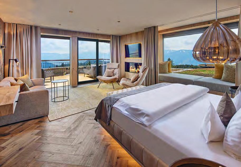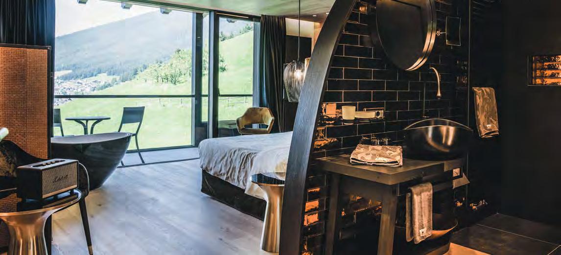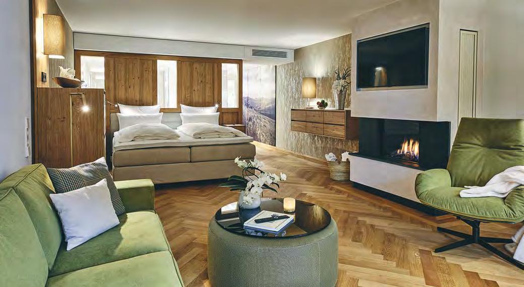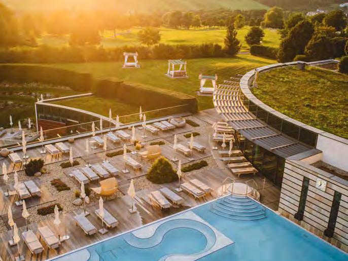 zehn neu gestylte Zimmer mit einem eleganten Mix aus hellem Holz und schwarzen Designer-Möbeln, frei stehender Badewanne und großer Glasfront mit atemberaubendem Blick auf St. Ulrich freuen. Schnell hat jeder sein Traumzimmer gefunden und stimmt sich auf einen weiteren Glücksmoment ein: Der 1000 Quadratmeter große ART-Spa mit Dampfbad und Biosauna erstrahlt im neuen künstlerischen Design. Darin eine goldene Außensauna mit großer Fensterfassade, welche über dem Schwimmbad schwebt und die Blicke auf die umliegende Bergwelt freigibt. Im 24 Stunden geöffneten Lifestyle-Innenschwimmbad und im panoramischen Außenschwimmbad mit Blick auf die Dolomiten, in den Whirlpools, in der Außensauna, im Private Spa und vielem mehr ist man der Kunst der Entspannung ganz nah. Exquisiter Genuss aus Küche und Keller, dazu das Beste aus der Region, verfeinert mit der Raffinesse anderer Küchenkünste, führt Feinschmecker im Hotel zum Gipfel der Gaumenlust. ■