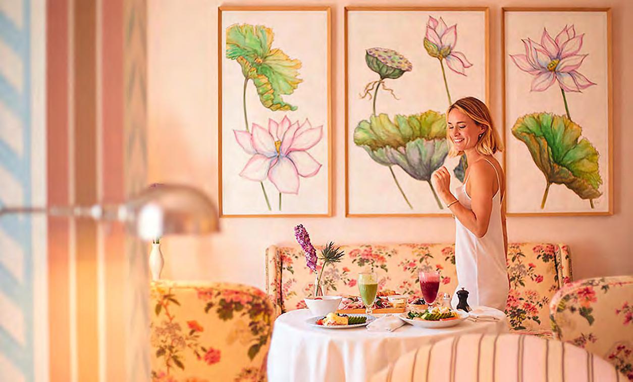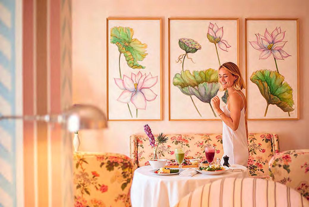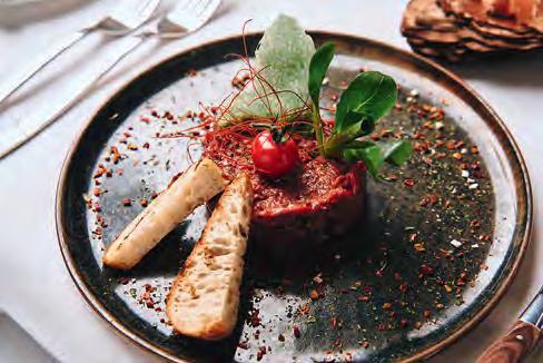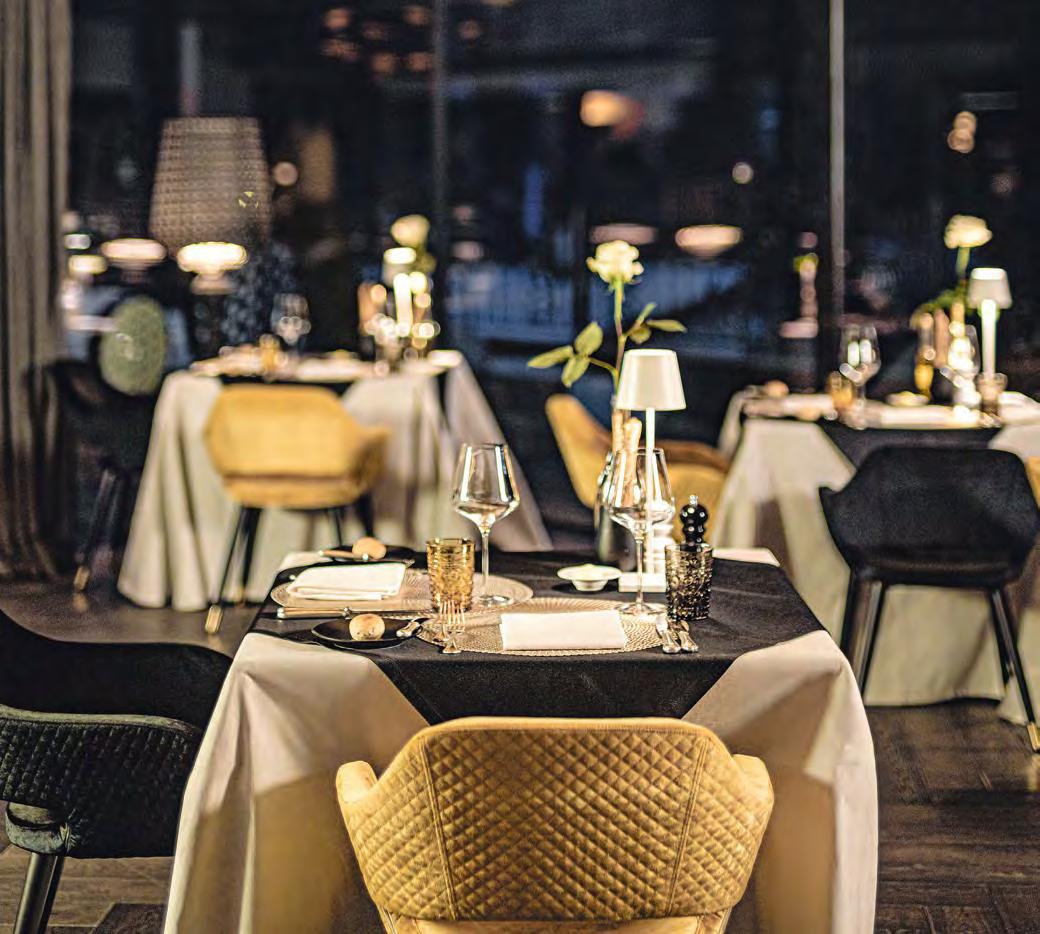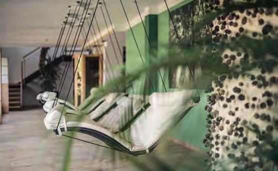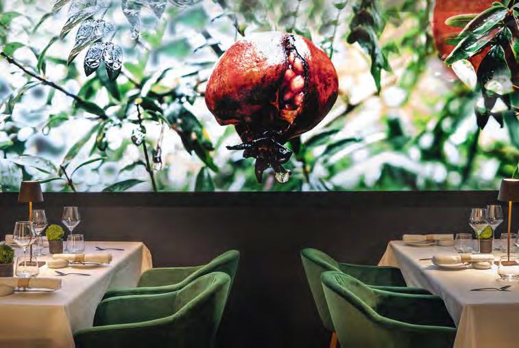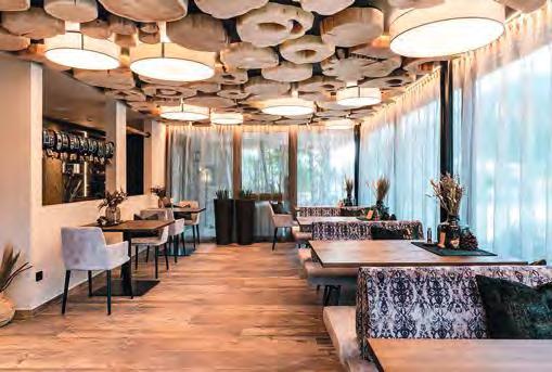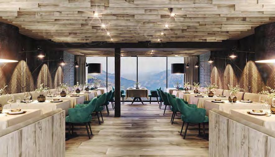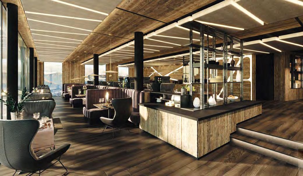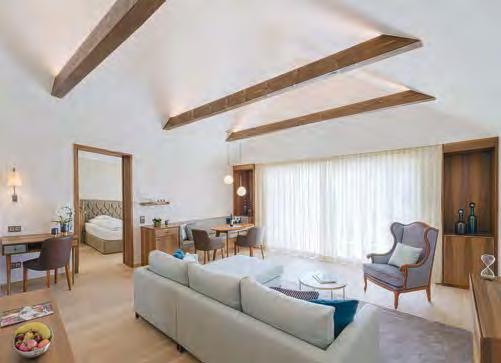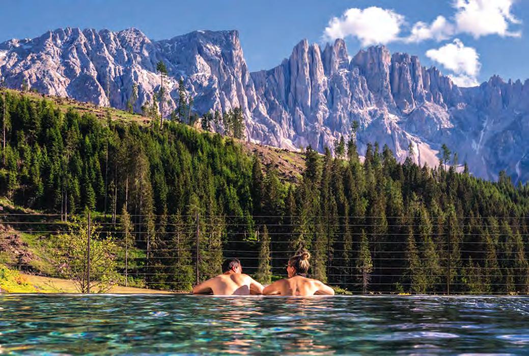 zehn neu gestylte Zimmer mit einem eleganten Mix aus hellem Holz und schwarzen Designer-Möbeln, frei stehender Badewanne und großer Glasfront mit atemberaubendem Blick auf St. Ulrich freuen. Schnell hat jeder sein Traumzimmer gefunden und stimmt sich auf einen weiteren Glücksmoment ein: Der 1000 Quadratmeter große ART-Spa mit Dampfbad und Biosauna erstrahlt im neuen künstlerischen Design. Darin eine goldene Außensauna mit großer Fensterfassade, welche über dem Schwimmbad schwebt und die Blicke auf die umliegende Bergwelt freigibt. Im 24 Stunden geöffneten Lifestyle-Innenschwimmbad und im panoramischen Außenschwimmbad mit Blick auf die Dolomiten, in den Whirlpools, in der Außensauna, im Private Spa und vielem mehr ist man der Kunst der Entspannung ganz nah. Exquisiter Genuss aus Küche und Keller, dazu das Beste aus der Region, verfeinert mit der Raffinesse anderer Küchenkünste, führt Feinschmecker im Hotel zum Gipfel der Gaumenlust. ■