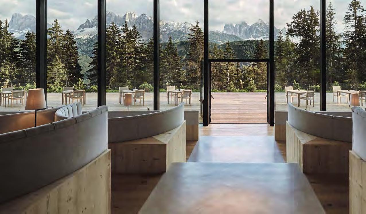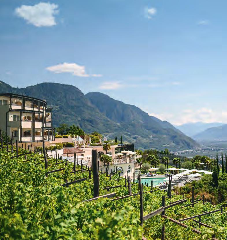 Seit Juni 2021 erstrahlt das Hotel Castel im idyllischen Ferienort Dorf Tirol – hoch über der Kurstadt Meran – in neuem Glanz. Für Familie Dobitsch, die das Fünf-SterneDomizil seit gut zwei Jahrzehnten mit großer Liebe und noch mehr Herzblut betreibt, erfüllt sich damit ein Lebenstraum. Denn endlich präsentiert sich ihr elegantes, feines Luxushotel genau so, wie sie es sich immer gewünscht hat. Für die Erneuerung wurden nahezu alle öffentlichen Bereiche komplett abgerissen und neu aufgebaut. Mit großen Veränderungen und neuem Glanz präsentieren sich besonders das Spa, das mit zwei Michelin-Sternen ausgezeichnete Gourmet-Restaurant sowie das Restaurant für die Hausgäste. Gastgeberin Evelyn Dobitsch mit ihrer natürlich herzlichen Art im Umgang mit den Gästen, ihrem feinen Gespür für individuelle Lebensart und exklusive Wohlfühlerlebnisse ist es zu verdanken, dass sich das Hotel Castel im Laufe der Jahre als eine der Top-Adressen in Südtirol etablieren konnte. Nicht umsonst hat das Südtiroler Luxus-Refugium im Laufe der letzten Jahre in allen Bereichen zahlreiche hochkarätige Auszeichnungen erhalten. Die wohl sinnenfreudigste gebührt der Küche und dem Meister am Herd, Gerhard Wieser. Das kulinarische Schaffen des Südtirolers ist geprägt von der Liebe zu den Produk-