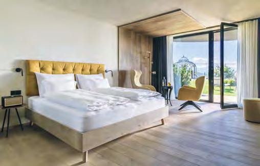 Die mit viel Liebe zum Detail eingerichteten Zimmer und Suiten sind Rückzugsorte voller Geborgenheit – besonders eindrucksvoll zu erleben im Wald-Chalet (220 qm), wo man auf zwei Etagen im Einklang mit der Natur residiert und dessen 80 qm große Dachterrasse mit HotWhirlpool, Außen-Sauna, Kuschelnestern und einzigartigem Panoramablick begeis-
