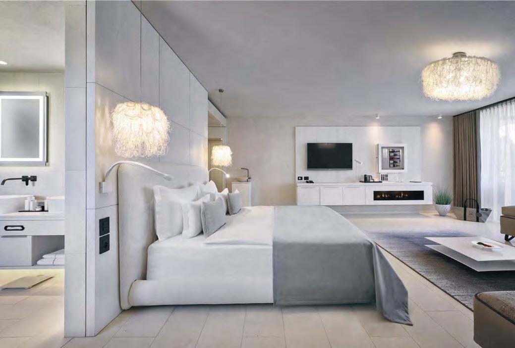 Umgeben von Olivenbäumen, oberhalb des kleinen mittelalterlichen Dorfes Lazise und nur wenige Minuten zum weitläufigen Süd-Ostufer des Gardasees, empfängt das Quellenhof Luxury Resort Lazise der renommierten Südtiroler Hoteliersfamilie Dorfer seine internationalen Gäste als eine der ersten Adressen Italiens. Palmen, Zypressen, glasklares Wasser, eine imposante Bergkulisse, zauberhafte Orte, die Nähe zu Verona und der Duft von blühenden Zitronenbäumen locken seit jeher die Menschen an diesen Sehnsuchtsort. Das elegante FünfSterne-Refugium ist ein Synonym für Lifestyle, Luxus und italienisches Dolce Vita. Moderne Architektur, exklusive Zimmer, prachtvolle Penthouse-Suiten, drei ganz neu eröffnete luxuriöse Garden Pool Villas, das Panorama Restaurant mit Cabrio-Dach, ein Sky Pool sowie der Wellnessund Spa-Bereich vereinen sich hier zu einem einzigartigen Wohlfühlort.