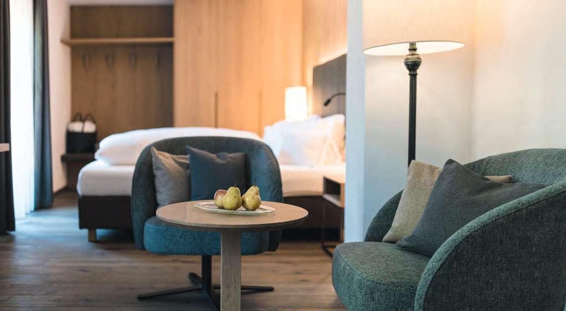mit viel Liebe zum Detail gestaltete Zimmer und Suiten bieten ein gemütliches Zuhause auf Zeit. Von den Balkonen fällt der Blick auf den sagenumwobenen Schlern, auf blühende Almwiesen und spektakuläre Felsformationen. Nicht umsonst erklärte die UNESCO die Dolomiten zum Welterbe.