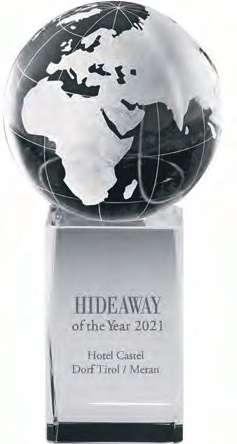 ten, sein Streben nach optimaler Qualität ist äußerst konsequent. Nachdem der Guide Michelin Wiesers hohe Kunst bereits mit zwei Sternen ausgezeichnet hat, katapultierten ihn die Tester des Gault&Millau im letzten Jahr mit fünf Hauben und 19 Punkten an die absolute Spitze der Südtiroler Gastronomie. Die Freude darüber war natürlich riesengroß! Da war der Schritt zu einem neuen, zeitgemäßen Ambiente seines Gourmetrestaurants nur konsequent. Aus der traditionsreichen Trenkerstube wurde nun das Castel finedining. Mit nur fünf Tischen ist das Restaurant ein wahres Schmuckstück, dem mit einem neuen Gebäude eine außergewöhnliche Fassung verliehen wurde. Hier steigert sich die Trilogie „Raum – Aussicht/Licht – Frischluft“ um ein Vielfaches. Vom Tisch aus verzaubert die Gäste der wohl exklusivste Ausblick auf die Stadt Meran durch eine 15 Meter lange Glasfassade, die im Sommer zu großen Teilen geöffnet werden kann. Der sympathische Herdkünstler nimmt seine Gäste mit auf eine Reise durch die alpinmediterrane Küche. Auch der gesamte Spa-Bereich wurde umfangreich neu gestaltet und präsentiert sich prachtvoller denn je. Gratulation an die Familie Dobitsch und ihr engagiertes Team zur Wahl des „HIDEAWAY of the Year 2021!“ www.hotel-castel.com