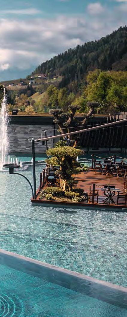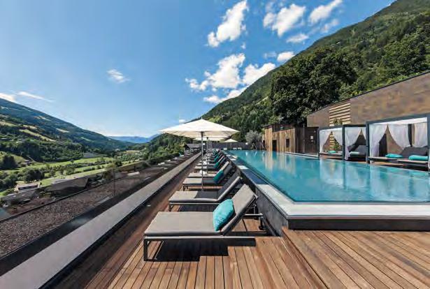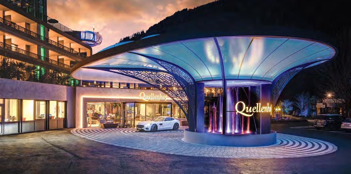 Passeier in Anspruch zu nehmen. Dazu zählen u a. die Wellness-Oase mit Spa, Pools, das Sole-Dampfbad, der For-adultsonly-Bereich, ein Acqua Family Parc, Freizeitangebote sowie das Medical Center im Quellenhof, ein führendes Institut für anspruchsvolle Präventivmedizin. ■