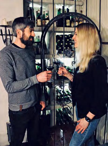 Böden. Diesen hohen Anspruch werden wir erhalten“, erzählt Jana Schlägel. Darüber hinaus bietet das Weingut seinen Gästen zauberhafte Ferienwohnungen und drei Ferienhäuser an. „Wir haben die Domizile mit viel Komfort und Liebe zum Detail eingerichtet. In unserem Ferienhaus H 1 zum Beispiel können bis zu acht Gäste unbeschwerte Urlaubstage erleben. Wie all unsere Wohnungen ist das Haus mit einer kompletten Küche ausgestattet, hat 140 Quadratmeter Wohnfläche, also reichlich Platz. Die Menschen sollen sich wohlfühlen, unsere Weine und die Schönheit unserer einzigartigen Region kennenlernen. Gern geben wir Ausflugs- und Restaurants-Tipps, zum Beispiel auf die Burg Arras. Sie liegt auf einer Bergkuppe mit traumhaftem Ausblick. Man kann dort ausgezeichnet essen und es gibt sogar ein Museum. Eine tolle HochzeitsLocation, dort haben wir 2015 geheiratet“, verrät die hübsche Gastgeberin lächelnd. Und noch ein Getränk sollte nicht uner-