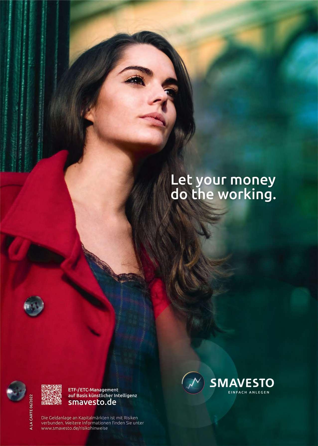 Bei Smavesto funktioniert sowohl der Registrierungsprozess als auch der eigentliche Investmentprozess vollständig digital. Mit dem Einsatz einer künstlichen Intelligenz ist der Investmentansatz vollkommen quantitativ und digital unterstützt. Alle Anlagevorschläge des Algorithmus werden im Nachgang von erfahrenen Portfoliomanagern plausibilisiert. Im Verlauf des gesamten LiveBetriebs mussten bisher keine Anlagevorschläge revidiert werden. Das zeigt, wie effizient die künstliche Intelligenz von Smavesto arbeitet. Unkomplizierter geht es kaum, sein Vermögen an den interna tionalen Kapitalmärkten zu investieren.