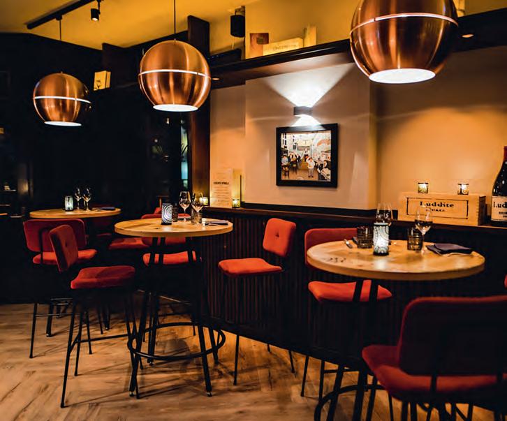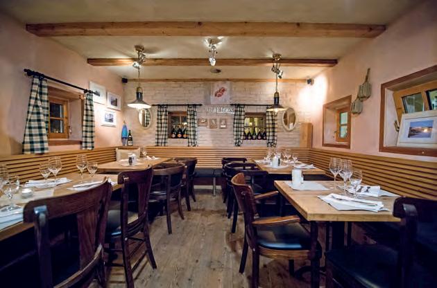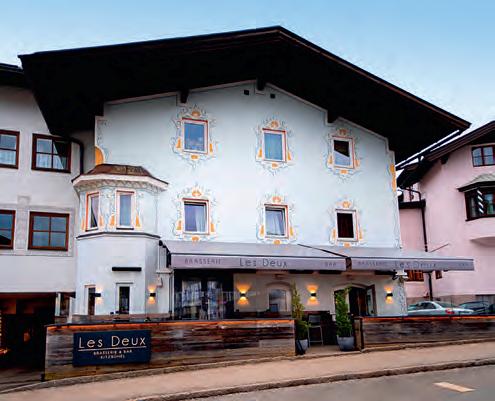 rund um das prasselnde Kaminfeuer zum Verweilen ein. Auch die angeschlossene Weinbar Leopold ist ein beliebter Treffpunkt, hier findet man sicher eines der umfangreichsten Angebote österreichischer Weine in ganz Kitzbühel.