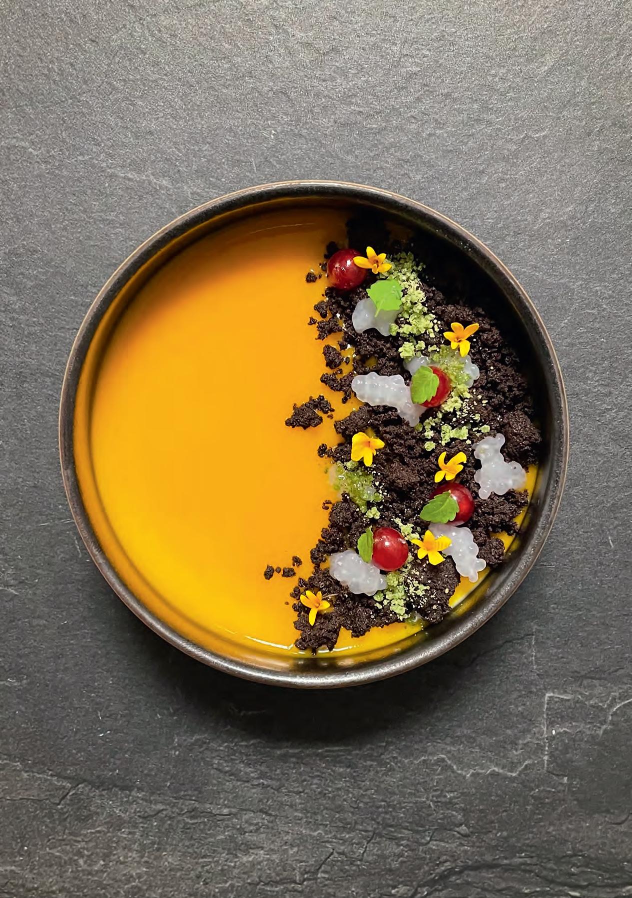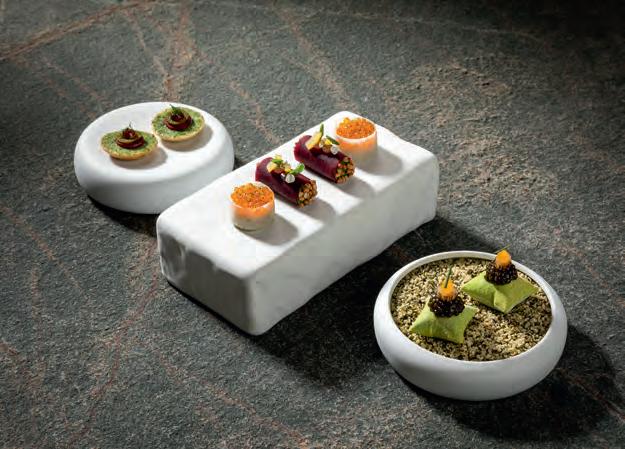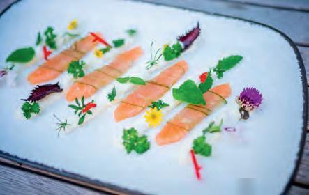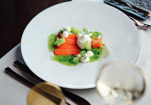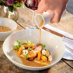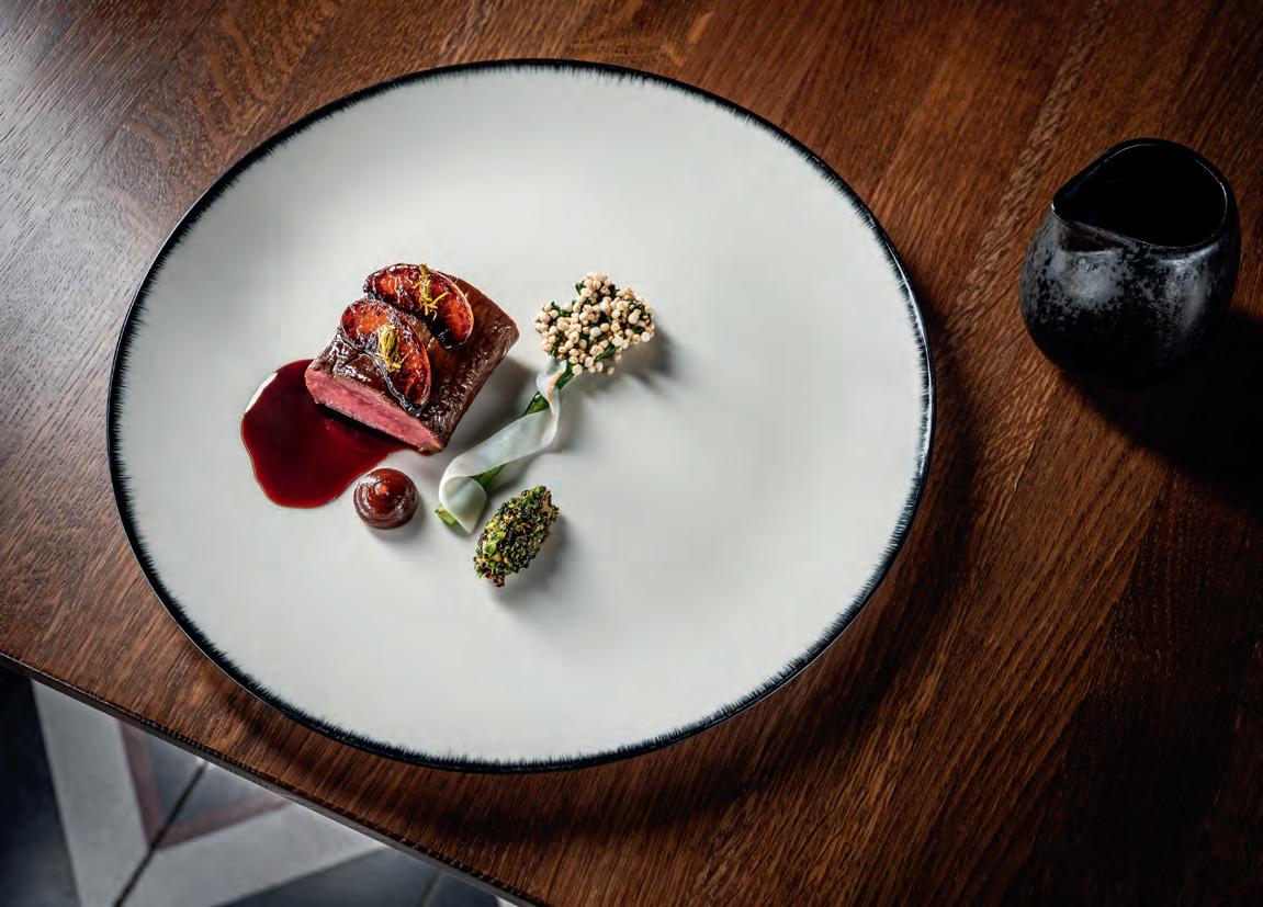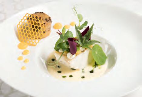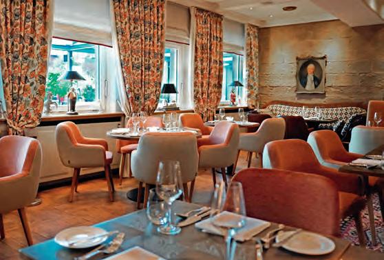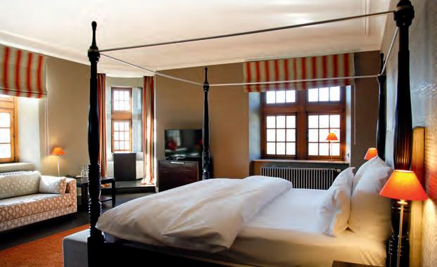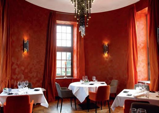 Highlight ist die 73 Quadratmeter große Suite Impér iale. Sie verfügt u. a. über zwei Kamine, Klimaanlage, FlatscreenTV, WiFi, Minibar, Safe und einen kleinen Salon im Turm des Schlosses. Von hier aus fällt der Blick auf den märchenhaften Garten und die Ardennen. Hauptanziehungspunkt für Feinschmecker ist das Gourmetrestaurant „Manoir de Lébioles“. Küchenchef Loïc Jambon schafft eine Symbiose zwischen internationalen und heimischen Produkten, wobei ihm der Balanceakt zwischen Zutaten der Ardennen mit Erlesenstem und Aromen aus aller Welt perfekt gelingt. Sein kreatives Können spiegelt sich optisch und geschmacklich auf den Tellern wider. Zur Auswahl stehen im Gourmetrestaurant ein siebensowie ein fünfgängiges Menü. Montags und dienstags werden die Gäste auch im Restaurant „La Betulla“ begrüßt und dort mit Gerichten aus einer kleinen, aber feinen Speisekarte verwöhnt. Zu allen Gängen weiß Sommelier Maxime Germain einen edlen Tropfen aus dem gut sortierten Weinkeller zu empfehlen.