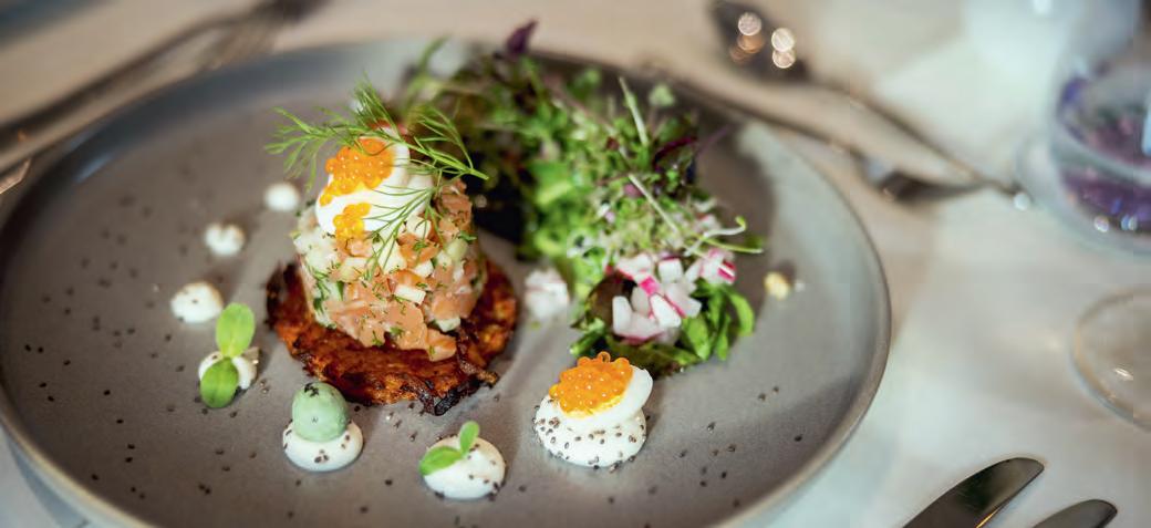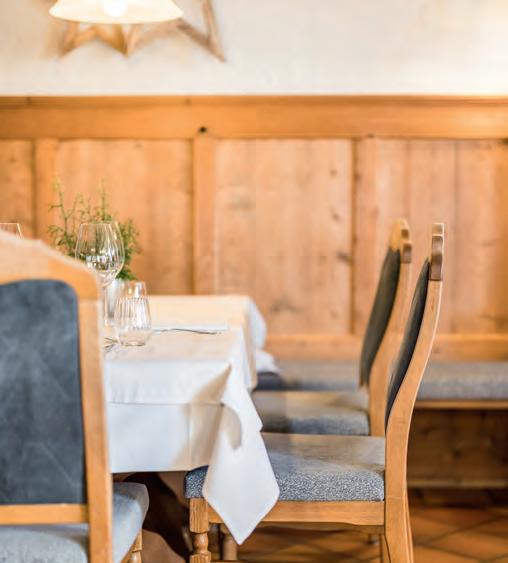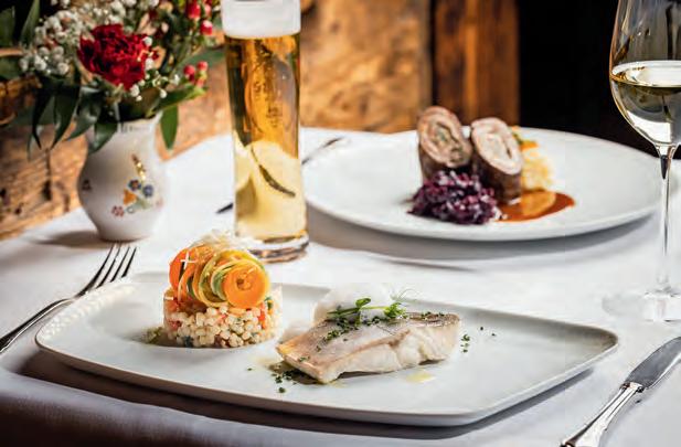 Zur Stärkung nach einem erlebnisreichen Golftag im Sommer oder dem Pistenzauber im Winter lädt der renommierte und aus vielen TopRestaurants in Kitzbühel bekannte Küchenchef Manuel Satzinger zu Köstlichkeiten der guten Tiroler Küche wie Gröstl oder Kasspatzen ein. Aber auch internationale Klassiker werden von dem herzlichen und stets gut gelaunten Service unter der Leitung von Gastgeberin Laura Mitter aufgetragen. Wie wäre es zum Beispiel mit einem Beef Tatar mit Kartoffelrösti, einem Vitello Tonnato oder dem einfach köstlichen BackhendlSalat? Ein perfekt zubereitetes Wiener Schnitzel darf natürlich ebensowenig fehlen wie ein DryAgedRinderfilet oder der beliebte EichenheimBurger mit BBQSoße. ■
