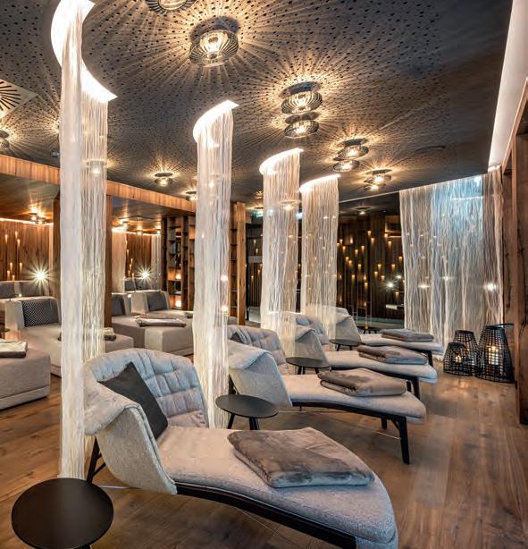 des Genusses heißt es beim Fünf-SterneFrühstück ebenso wie beim erlesenen Lodge-Dinner, untermalt von edlen Weinen und individuell abgestimmt auf persönliche Wünsche und Vorlieben. Unabhängig von der Uhrzeit ist in der Regel kein Anliegen zu unbedeutend, um für das Wohlergehen des Gastes zu sorgen. Nach einem erlebnisreichen Tag auf der Piste lockt die leckere Nachmittagsjause oder der Spa- und Fitness Bereich. Neben einem Dampfbad mit einer Auswahl an Duftessenzen sowie Solezusatz und Lichttherapie gehören dazu die finnische Zirbensauna, der Ruhebereich mit RelaxLiegen sowie ein Trinkwasserbrunnen mit Bergquellwasser. Schön zu sehen, wie das alles vom Lodge-Team mit viel Herzlichkeit und persönlichem Engagement begleitet wird – für ein anspruchsvolles Publikum, dass sich sicher sein darf, dass das Urlaubsglück hier sein Zuhause hat. ■