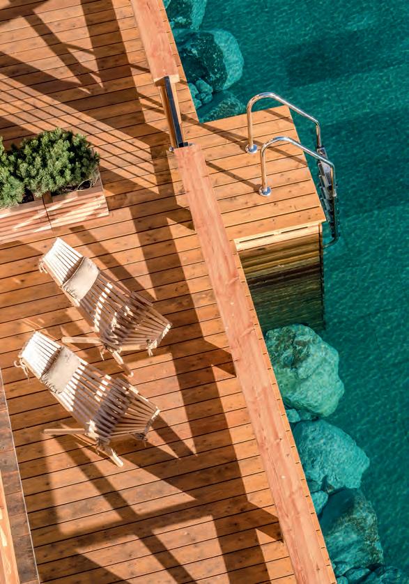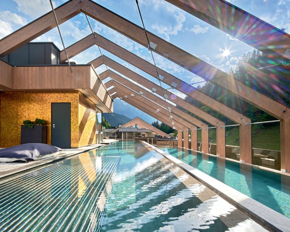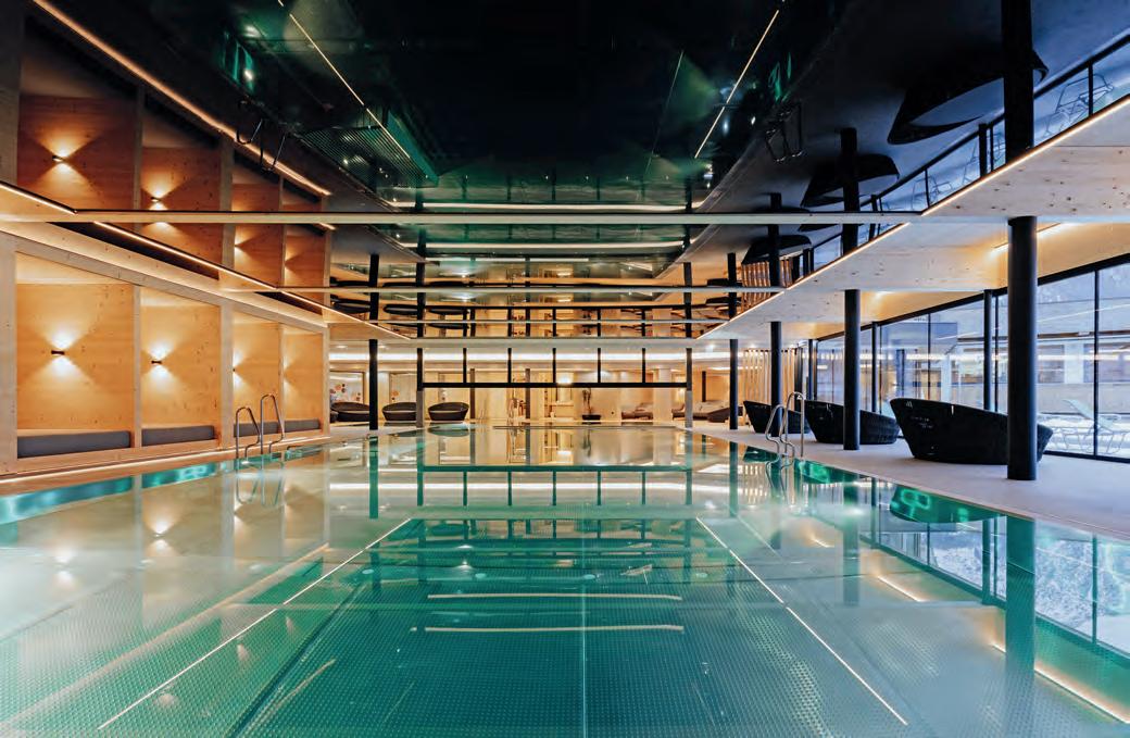 onale Köstlichkeiten mit internationalen Einflüssen. Als Auffangbecken für Genießer zeigt sich der Wellnessbereich mit beheiztem 25-Meter-Natursteinpool, Saunabereich, Fitnessarea und Ruheraum. ■