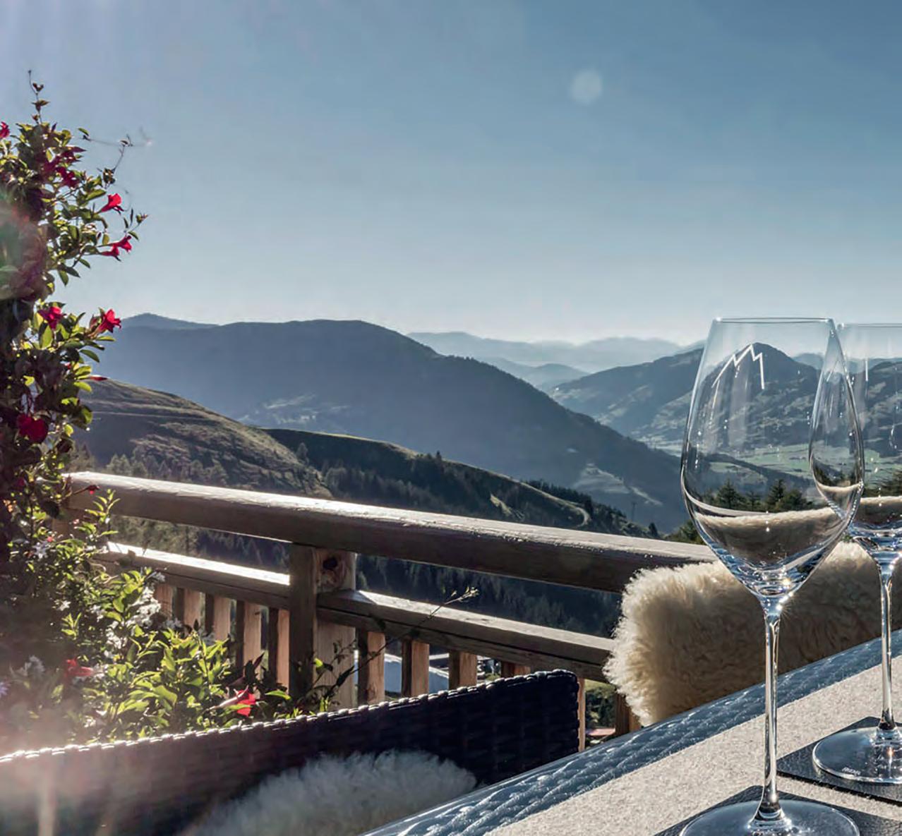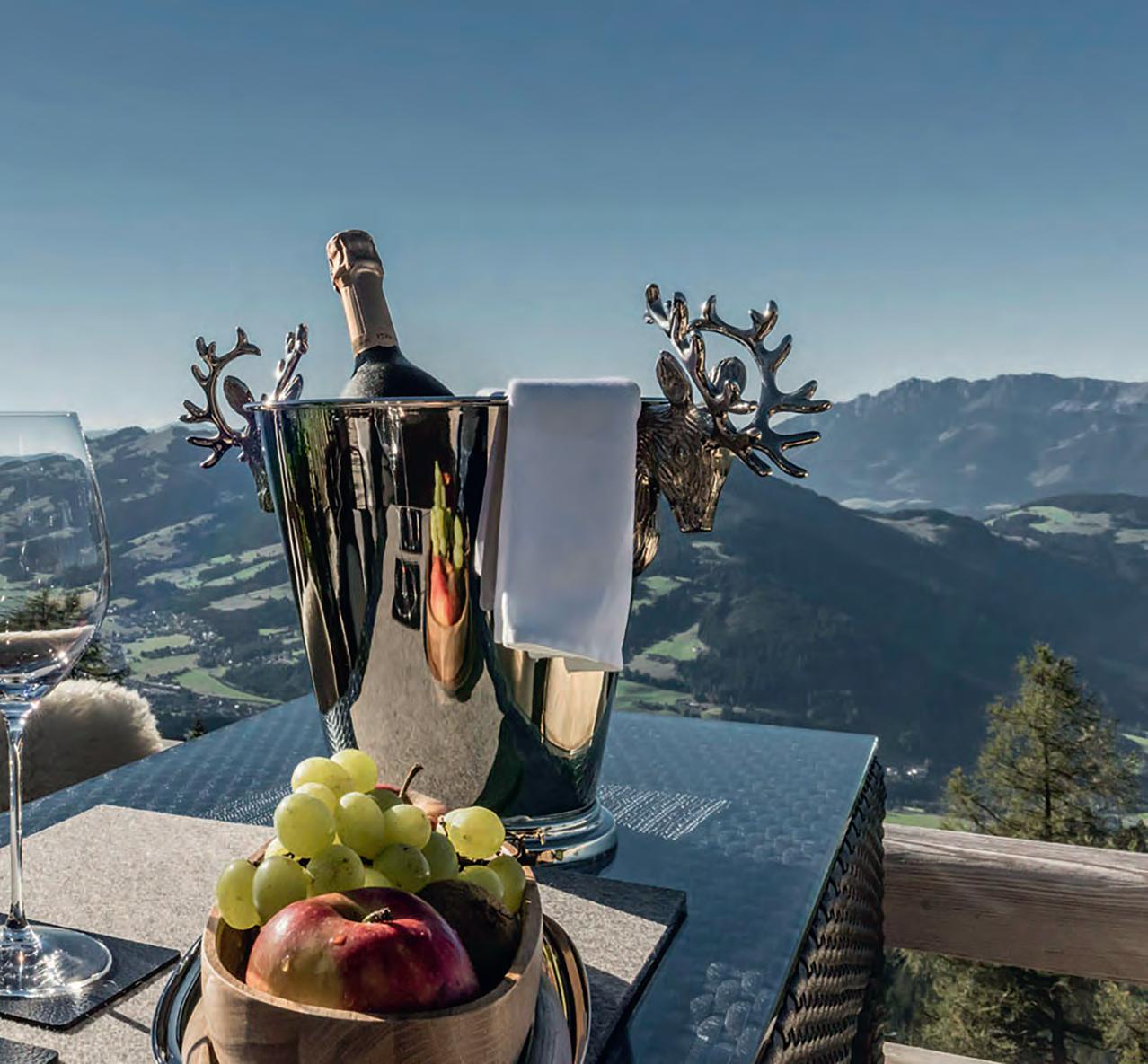 Auf der großen Sonnenterrasse ist man von der Bilderbuchkulisse der Kitzbüheler Alpen umgeben.