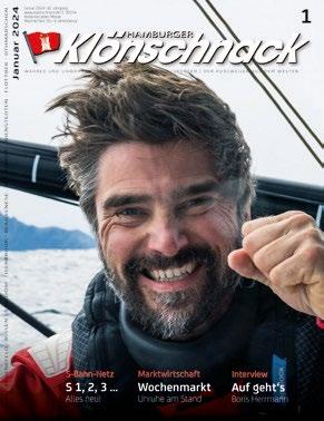Haushaltsverteilung: FUNKE Logistik Hamburg GmbH Telefon 040 86 66 69-0, info@kloenschnack.de Klönschnack digital Internet: Michael Wendland (-14), michael.wendland@kloenschnack.de E-Paper über www.kloenschnack.de, auf Facebook, Instagram und mit Sonderbeiträgen über Youtube (Hamburger Klönschnack) Jahresabonnement Jahresbezugspreis 30 Euro innerhalb der Bundesrepublik Deutschland, europäisches Ausland/Übersee 72 Euro (inkl. MwSt., Zustellgebühr). Der Klönschnack erscheint monatlich zum Anfang eines Monats. Abonnementbetreuung und Leserservice abo@kloenschnack.de leserbriefe@kloenschnack.de