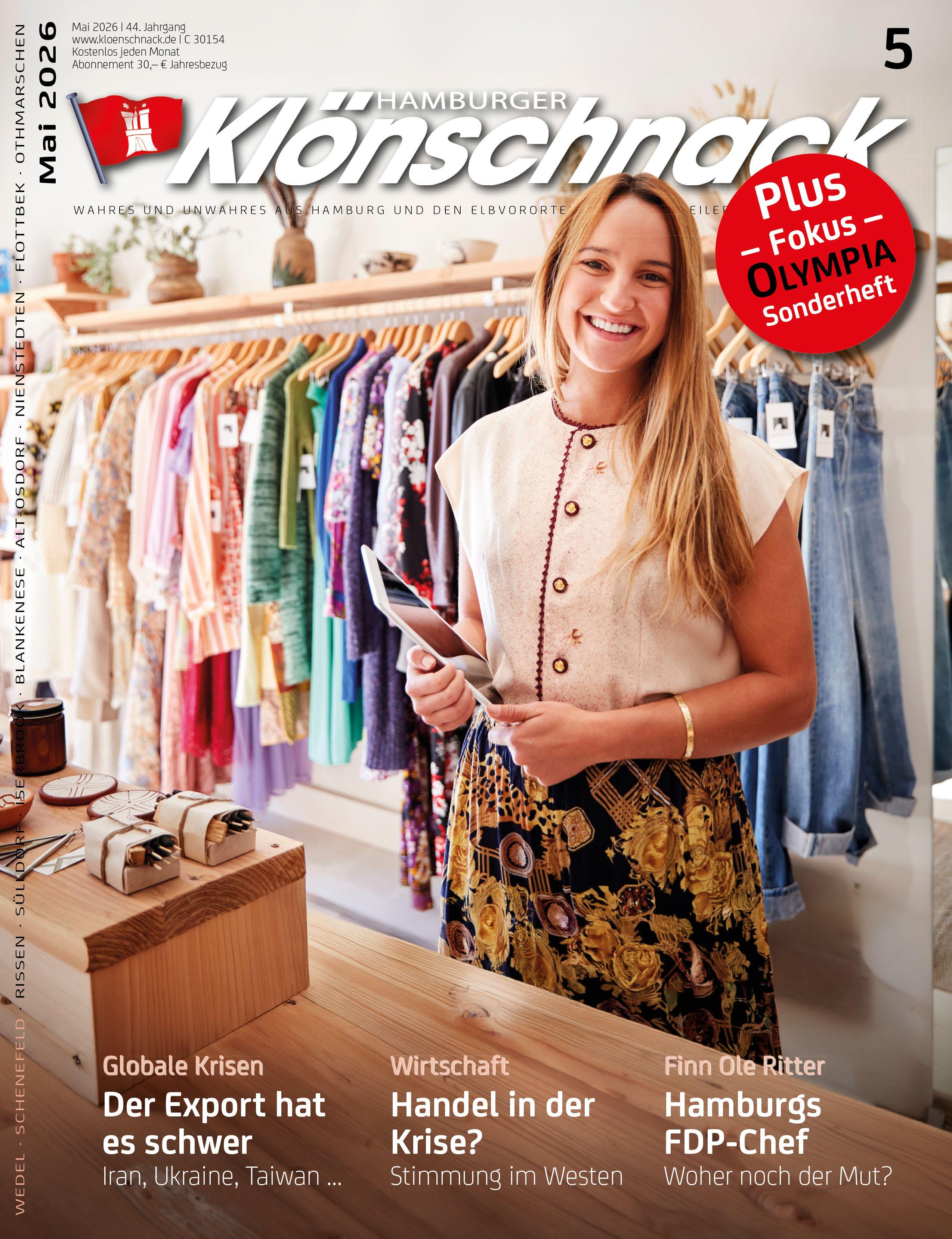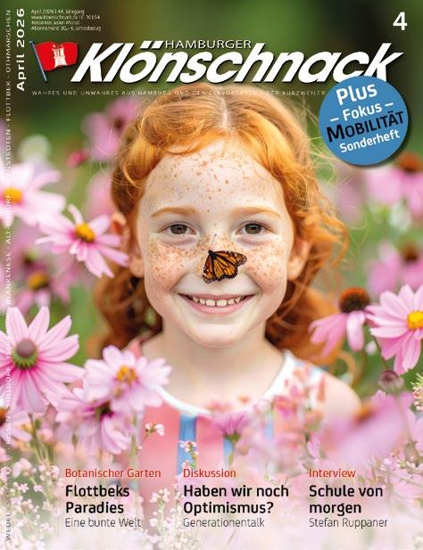 Haushaltsverteilung: FUNKE Logistik Hamburg GmbH Telefon 040 86 66 69-0, info@kloenschnack.de Klönschnack digital Internet: Sophie Rhine (-24), sophie.rhine@kloenschnack.de E-Paper über www.kloenschnack.de, auf Facebook, Instagram und mit Sonderbeiträgen auf Youtube (Hamburger Klönschnack) Jahresabonnement