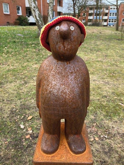 Vom Bauverein der Elbgemeinden erhielt er beispielsweise 2024 den Auftrag, zum 125-jährigen Jubiläum des Bauvereins eine Skulptur zu gestalten. Am Ende erhielt jedes der 20 Quartiere eine eigene Figur aus Eisen mit dem klingenden Titel „Der ideale Mieter“.