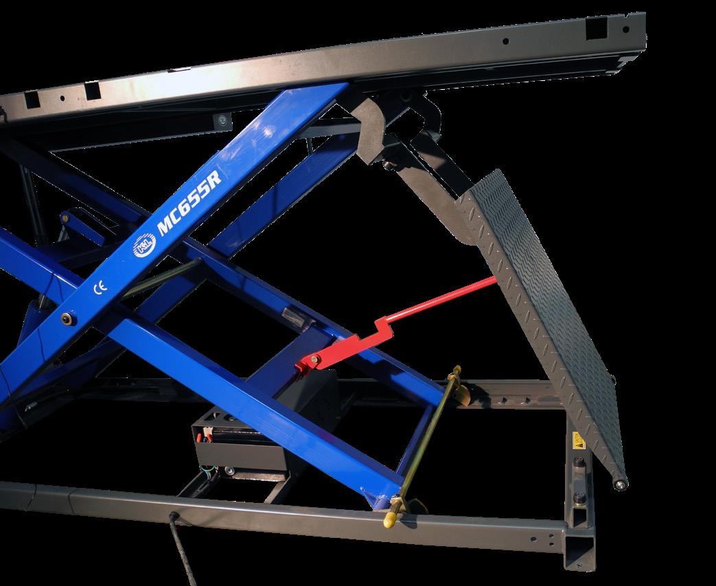 The MC655R from K&L Supply is the next step up in high performance lifts. Along with a 48” maximum raised height and 1 ton capacity, the MC655R features a hand held remote control and a frame mounted pump. This does away with pump stands and excess hose, keeping your service bays clear of extraneous clutter. Optional side panels, now with our redesigned fastmount system, increase the working width of the MC655R Hydraulic Lift to 56.5 or 68.5 inches, allowing the widest utility vehicles and golf carts to be serviced. With a full range of available options, the MC655R can be tailored to meet any shops’ requirements, whether you service bikes, trikes, quads, or carts. K&L’s build standard is reflected in the CE certification that the MC655R carries, our commitment to quality has never been easier to harness for your shop.