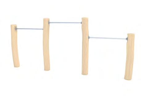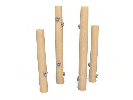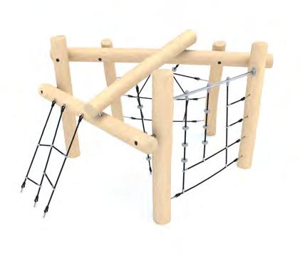 Disse huskestativene kombinerer robuste bein i Robinia med tverrligger i stål, og gir en slitesterk og naturlig løsning for lekeplasser med høye krav til kvalitet og levetid.
