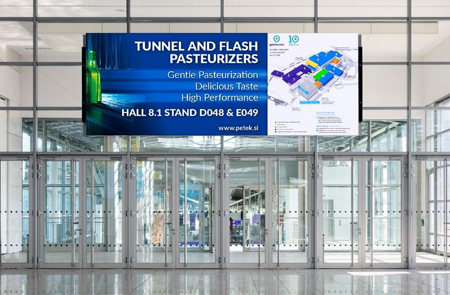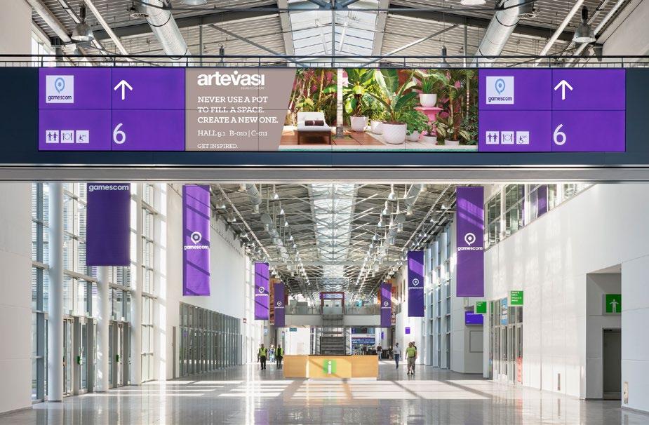 This screen is located in front of the turnstiles in the Entrance North to show the visitors the right way, to your booth.