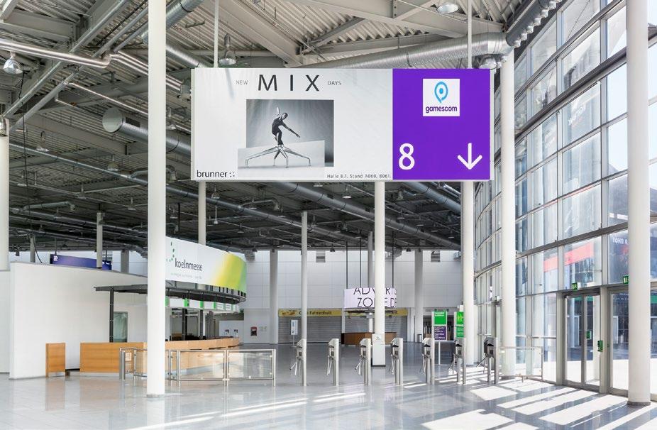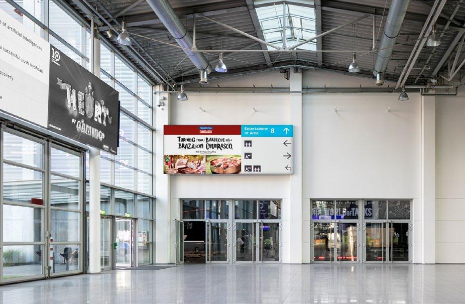 This screen is located in front of the turnstiles in the Entrance North to show the visitors the right way, to your booth.