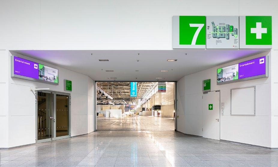 At this highly frequented spot, your advertising will draw the visitor‘s attention to your stand as soon as they enter the exhibition hall.