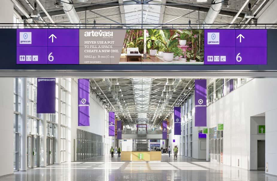 Lenken Sie mit diesen Screens die Aufmerksamkeit bereits beim Betreten der Halle auf Ihren Messestand!