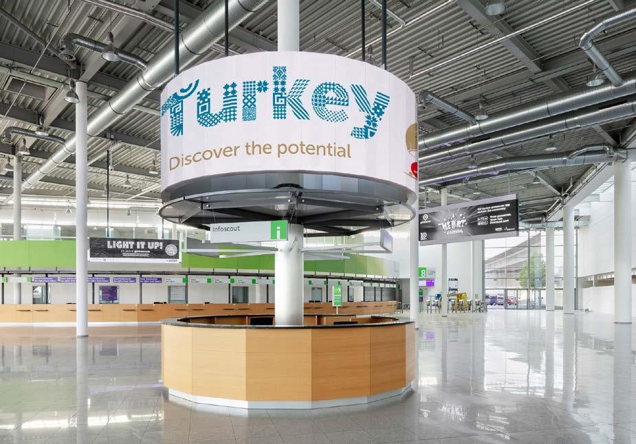 Verabschieden Sie hier die Besucher der Koelnmesse. Das Mega-Display befindet sich direkt über den Drehsperren. So können Sie dem Besucher noch kurz vor Verlassen des Messegeländes Ihre Werbebotschaft mit auf den Weg geben und einen bleibenden Eindruck hinterlassen.