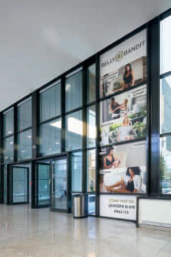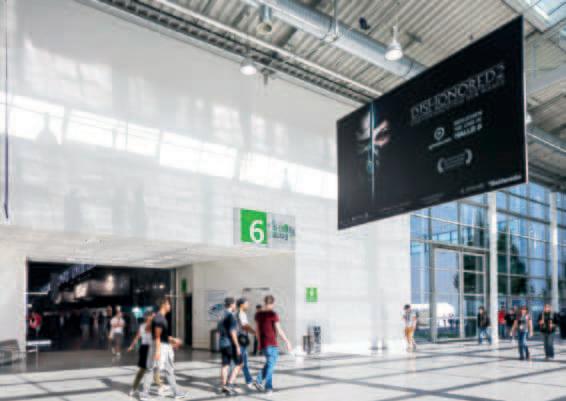 – Verstärken Sie die Präsenz Ihres Unternehmens durch großflächige Werbung an den Stirn- und Seitenflächen der Hallenaufgänge sowie in den Eingangsbereichen und Passagen.