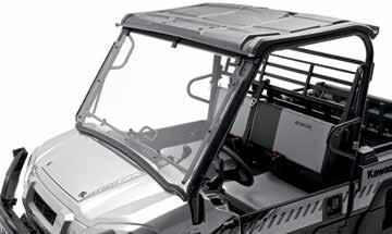 Three-position Flip-Up Polycarbonate Windshield provides the option for a sealed windshield with the ability to flip up to let just the right amount of air into the cabin • Closed and vented positions allow occupants to limit air flow when driving while the fully open position provides maximum airflow while stopped • Made from 6mm (0.236”) scratch-resistant polycarbonate (hard coated)