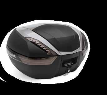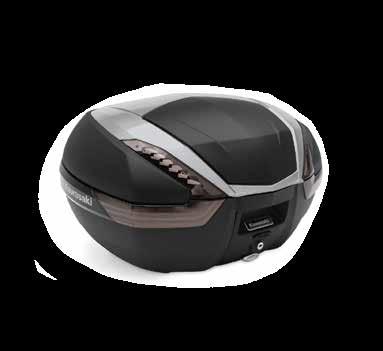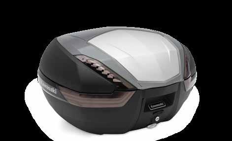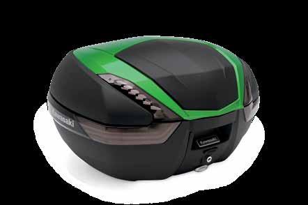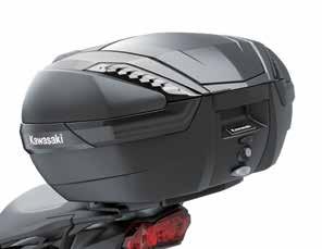 • Enough room for your gear; including most full faced helmets • Sleek modern styling, exclusive Kawasaki logo, and color-matched panels and trim perfectly match the aggressive design of your Kawasaki motorcycle • Utilizes the Kawasaki One Key System, allowing you to use the ignition key for unlocking and an Integrated Mounting System that won’t leave behind unsightly brackets when removed