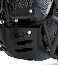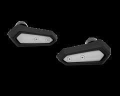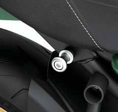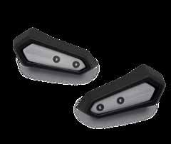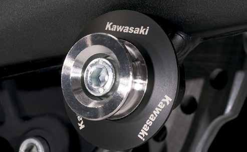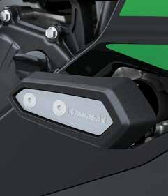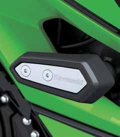 Help protect your engine shrouds from tip-over damage • High density black ABS plastic Frame Sliders feature the Kawasaki logo and are mounted with factory designed metal brackets • Includes required brackets, hardware, and installation instructions • Note: Frame Sliders help protect your motorcycle, but will not prevent all types of damage Ninja H2® (16+), Ninja H2® Carbon (16+) Frame Slider Set ............................................................