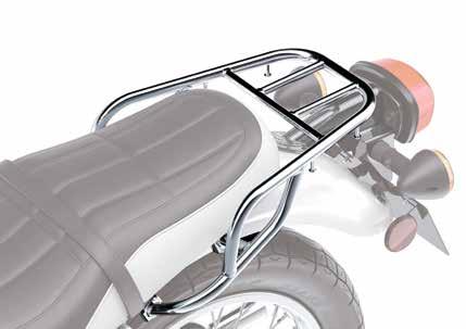 Durable tubular steel chrome finish construction mounts securely to the rear chassis • Provides 6.5 pound (3.0 Kg) cargo capacity • Rack dimensions approximately 8" x 6" W230 (25) Rear Carrier