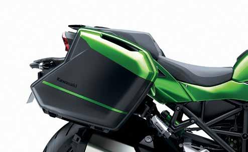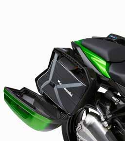 • Saddlebags are easy to remove and attach without tools once the set is installed by an authorized Kawasaki dealer—just click on and off the motorcycle