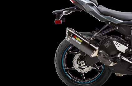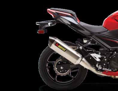 This carbon fiber slip-on muffler set offers the unique Akrapovič sound as well as weight savings when compared to the stock exhaust system • This is a stylish upgrade for your Ninja® 400 motorcycle Non Kawasaki branded product, produced and developed by Akrapovič.