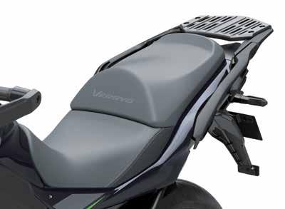 The Comfort SE Seat offers taller riders a relaxed knee bend and thicker urethane cushioning • Seat height is 830mm (33˝) • Rain cover included for washing the bike or parking in wet weather • PVC foam with vinyl cover • Micro-sueded panels and custom stitching complements the aggressive styling of the Ninja H2 SX SE motorcycle • Standard equipment on some Ninja H2 SX SE motorcycle models