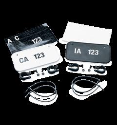 For states where vehicle identification is required • 191mm (7½)” x 102mm (4”) plastic plate Mounts with supplied hardware or zip ties • Includes 2 sets of 0-9 and A-Z decal sheets